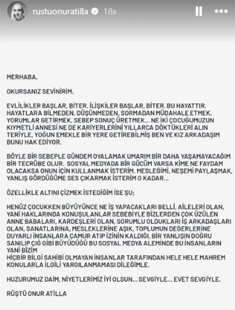 Rüştü Onur Atilla, sosyal medyada yeni ilişkisi hakkındaki kötü yorumlar nedeniyle yazılı bir açıklama yaptı:
