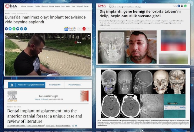İHA’nın geçtiği haber, eşine ender rastlanacak olayın mağduru Ramazan Yılmaz’ın anlatımına ve röntgen görüntülerine dayanıyordu. Yılmaz, Bursa’daki klinikteki diş tedavisi sırasında takılan implantın vidasının “çene kemiğini delip göz duvarının arkasından beyin omurilik sıvısının olduğu bölgeye saplandığı”nı, bunun üzerine diş hekiminin kendisini hastaneye götürüp bıraktığını, oradaki ameliyatla yaşama döndüğünü anlatıyordu.