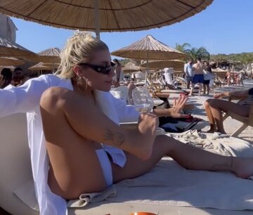 Tatil serüvenini Instagram hesabından takipçileriyle paylaşan İrem Derici, "Bu eller çok yoruldu artık, biraz da ayaklar yorulsun." dedikten sonra içki dolu bardağındaki şarabını ayak parmaklarının arasına koyarak içti.