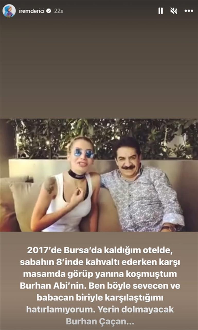 Sanatçının vefatı sonrası sosyal medya hesabından üzüntüsünü dile getiren Derici, Çaçan ile fotoğrafını paylaşıp, şu mesajı yazmıştı: