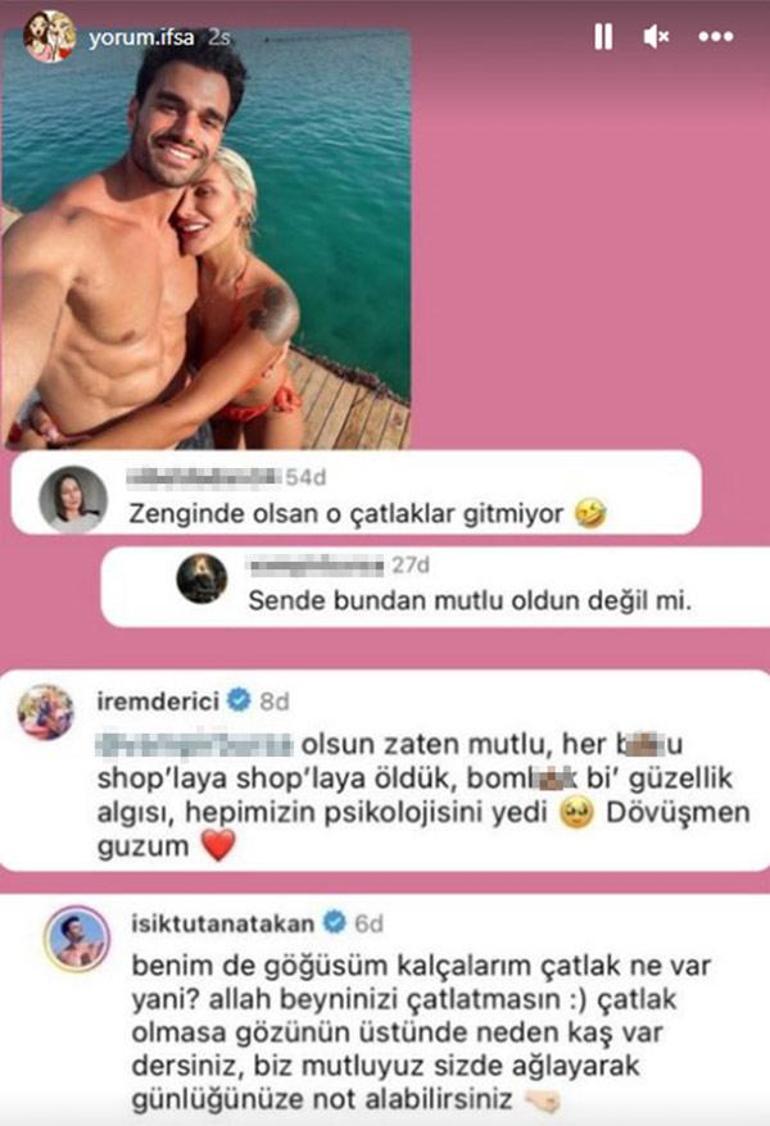 Sevgilisini yapılan yoruma kayıtsız kalmayan Atakan Işıktutan, "Benim de göğsüm, kalçalarım çatlak ne var yani? Allah beyninizi çatlatmasın. Çatlak olmasa 'Gözünün üstünde kaş var' dersiniz" mesajı ile tepkisini dile getirdi.