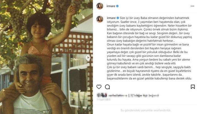 Irmak Ünal, Instagram hesabının hikaye bölümünden yaptığı paylaşımına ise ''Bu dünyadan bir Erol Tarhan geçti. Işıklı yolun açık olsun babacığım. Her şey için, en çok bana babalık ettiğin için teşekkür ederim. Çok kıymetlisin. Seni seviyorum'' ifadelerini kullandı.