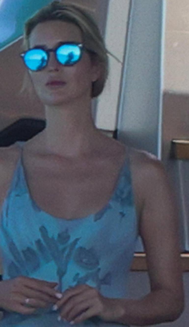 Mavi bir bikini giyen Ivanka, fit görüntüsüyle dikakt çekti. 41 yaşındaki Trump, mayosuyla aynı renkli güneş gözlüğü taktı.