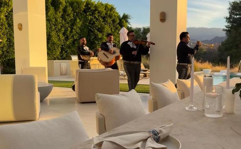 Yemek yedikleri sırada bir anda bahçeye müzisyenler geldi. O anları Instagram hesabından paylaşan Bieber, milyonlarca beğeni aldı.