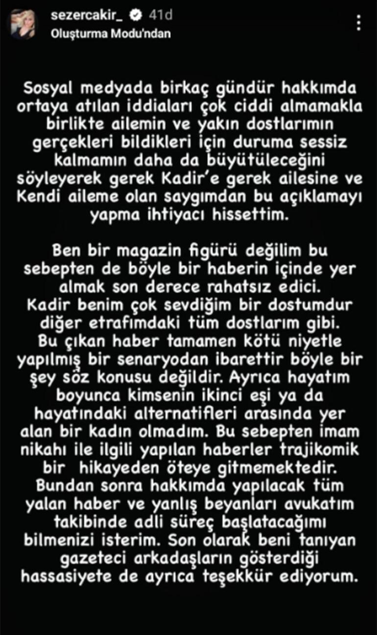 SEZER ÇAKIR'DAN AÇIKLAMA GELDİ
