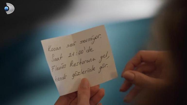 Merve otel odasından çıkarken kapıda bulduğu notla resmen şoka uğradı. Bulduğu minik kağıtta "Kocan seni sevmiyor. Saat 21:00'de Flavios Restorana gel, kendi gözlerinle gör." yazıyordu. Saat yaklaştığında Hakan, toplantısı olduğunu söyleyerek odadan çıkmak istedi. Eşi Merve de onu toplantıyı iptal etmesi için ikna etmeye çalıştı. Evliliklerindeki çatırtının sebebini anlatacaktı. Sahra da Hakan'ı tehdit ediyordu ve yemeğe gelmezse eşine söyleyeceğini belirtmişti. Hakan eşinin ısrarlarına aldırış etmeden yemeğe indi ve olanlar oldu.