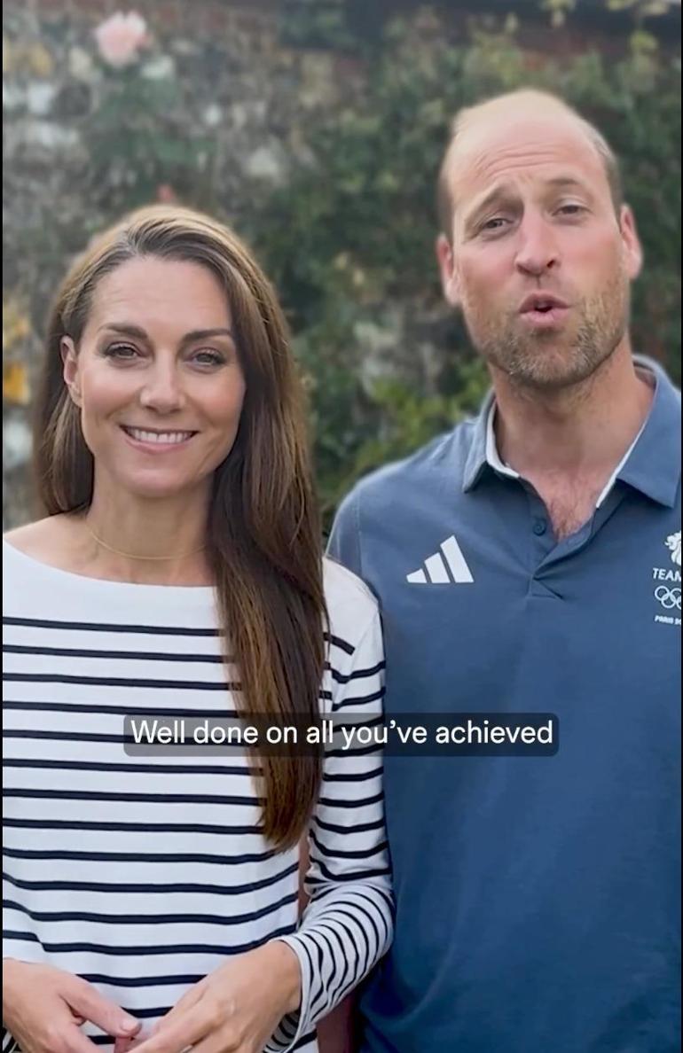 Yazın geri kalanında halka açık hiçbir etkinlikte yer almayacağı iddia edilen Galler Prensesi Kate Middleton, eşi Galler Prensi William ile birlikte bir video mesaj yayınlayarak; Büyük Britanya Olimpiyat Takımı'nın sporcularını kutladı.