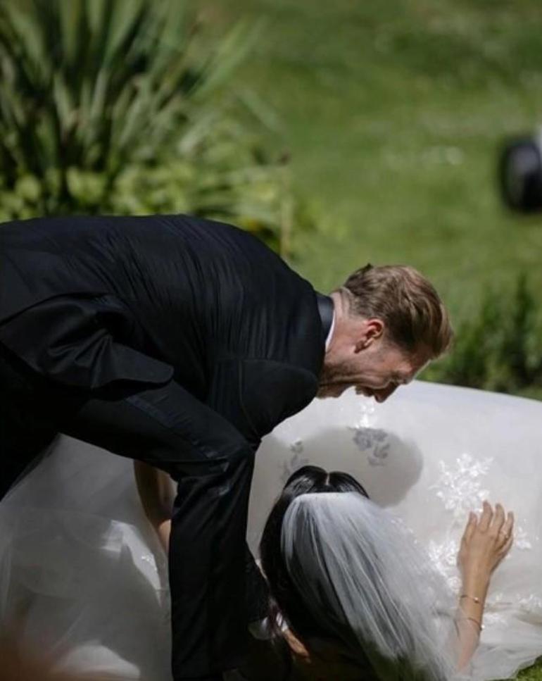 Karsu bu sefer renkli karelerinin yanında başına gelen talihsiz olayları da yayınladı. Bir ara gelinliğinin azizliğine uğrayarak düşen Karsu, eşi Mike Schrama'nın kendisini kaldırdığı kareyi de paylaştı.
