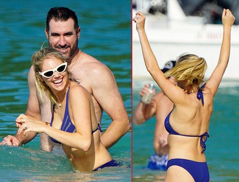 Sonrasında arkadaşları da yanlarına gelen ikiliden Kate, bir ara denizin içinde dans etti. Upton ve Verlander, arkadaşlarıyla birlikte poz vermeyi de ihmal etmedi.