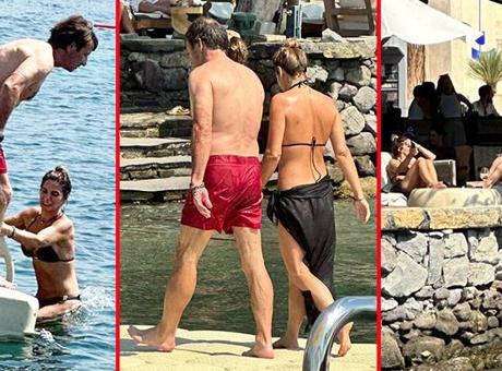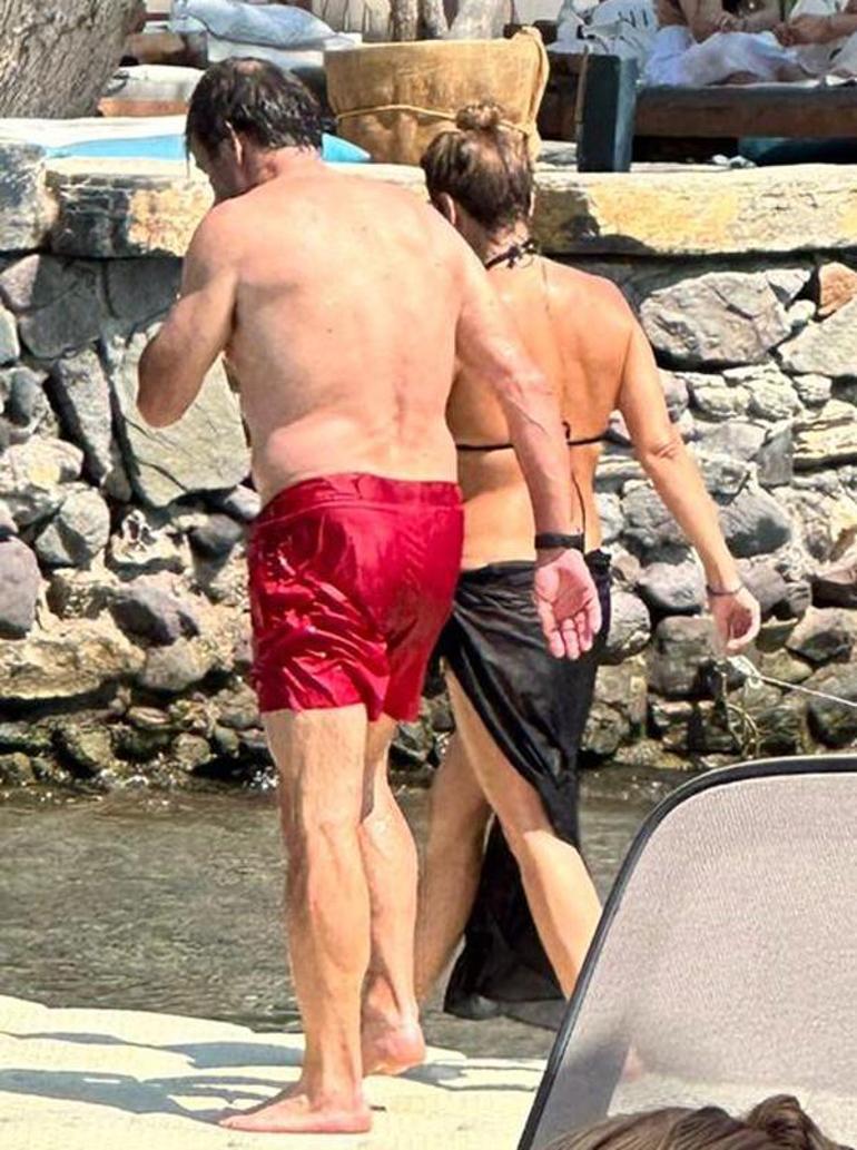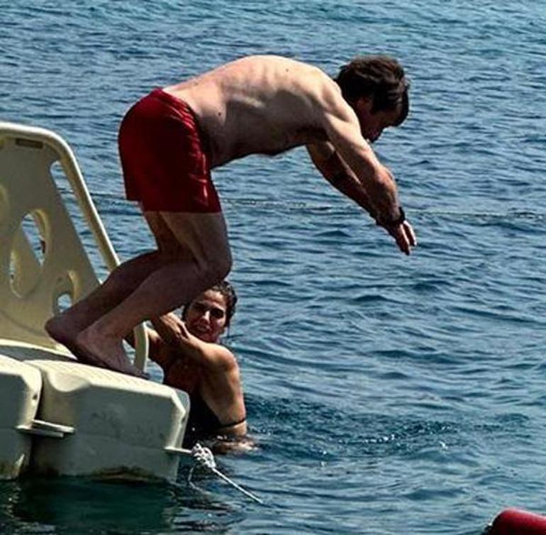 Mekana erken saatlerde gelip deniz keyfi yapan ikili, yine mekanı hızlıca terk etti. İskeleden denize girecekleri sırada el ele tutuşup yürüyen çiftin romantik anları, kameralara böyle yansıdı.