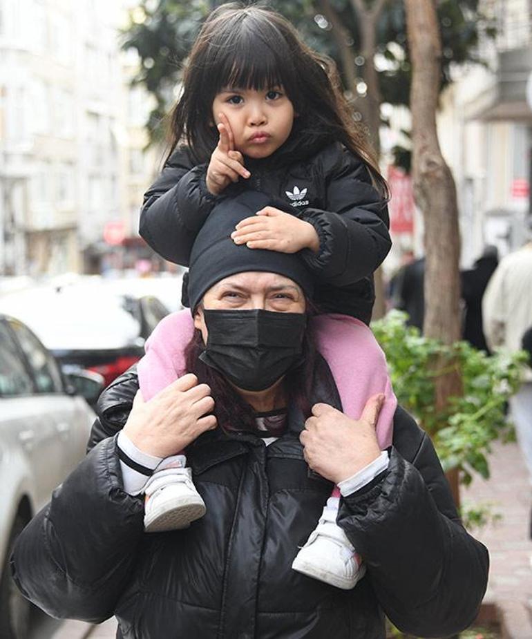Ünlü oyuncu, omuzlarına aldığı torununu basın mensuplarına gösterip, "Damat Koreli, kızım Kore’ye gelin gitti. Damat burada öğretmenlik yapıyordu, tanışıp evlendiler. Kızım 19 yaşındaydı evlendiklerinde, 20 yaşında anne oldu. Torunum Türkçe, İngilizce ve Korece konuşuyor" dedi.