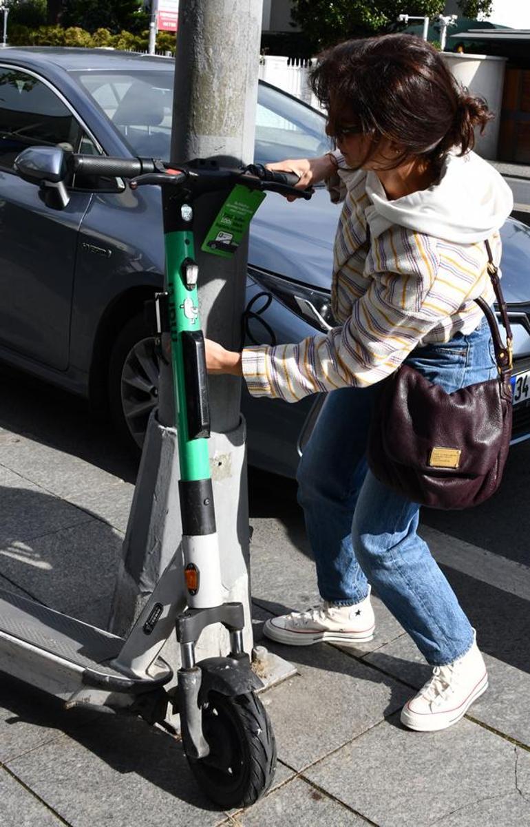 Kuaföre giden bir çocuk annesi, geleceği yere yaklaştığı sırada kaldırımdan inen araç sahibi ile kısa süreli bir yol verme sohbetine girdi. Ardından kendisini çeken gazetecileri görünce, scooter’ını mekanın önündeki elektrik direğine bağladı.