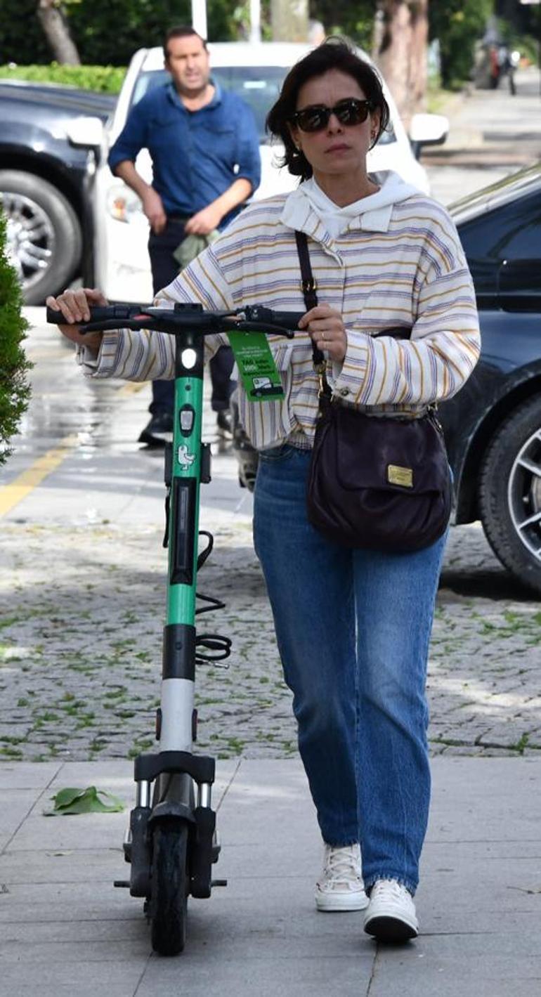 37 yaşındaki Özpirinçci, önceki gün Bebekte elektrikli scooter’la objektife takıldı.