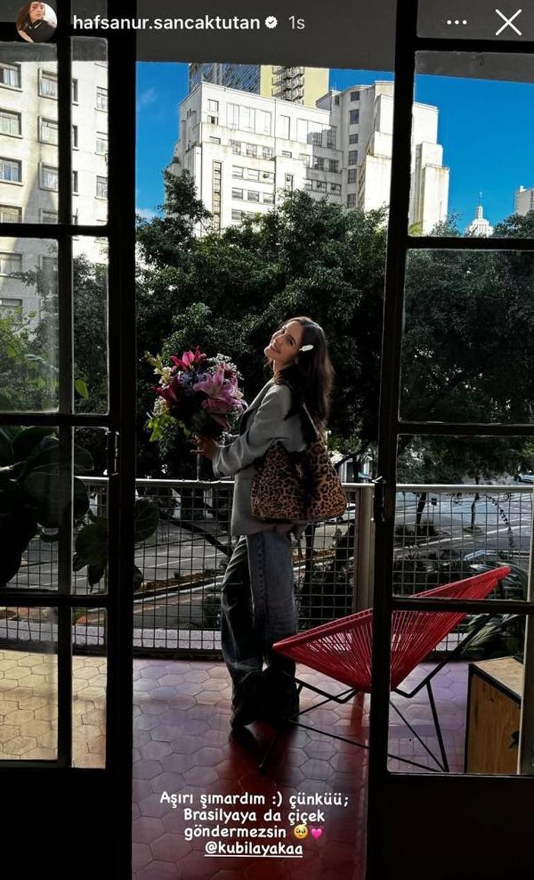 'Vatanım Sensin', 'Çukur', 'Aşk 101', 'Oğlum', 'Cam Tavanlar', 'İnci Taneleri' gibi yapımlarda rol alan başarılı oyuncu Kubilay Aka, Hafsanur Sancaktutan'a sürpriz yaptı. Brezilya'da olan güzel oyuncuya Kubilay Aka çiçek gönderdi. Instagram hesabından paylaşım yapan Sancaktutan, "Aşırı şımardım. Çünkü Brezilya'ya da çiçek göndermezsin" diyerek Aka'yı etiketledi.