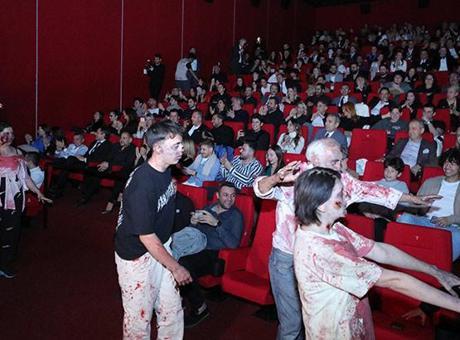 Yönetmen koltuğunda Kamil Çetin'in oturduğu filmin galası için özel makyaj ve kostümlerle hazırlanan 15 kişilik zombi grubu, salonları tek tek gezerek, galaya katılanlara eğlenceli anlar yaşattı.