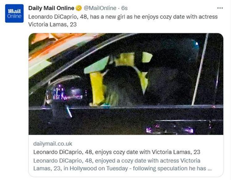 Son yıllarda 25 yaşından büyük kimseyle çıkmamasıyla ün yapan Oscar ödüllü oyuncu, aktör Lorenzo Lamas'ın kızı olan ve DiCaprio'nun 1997 yapımı ikonik filmi Titanic'in gösterime girmesinden iki yıl sonra doğan Victoria ile bir arabaya binerken görüldü.