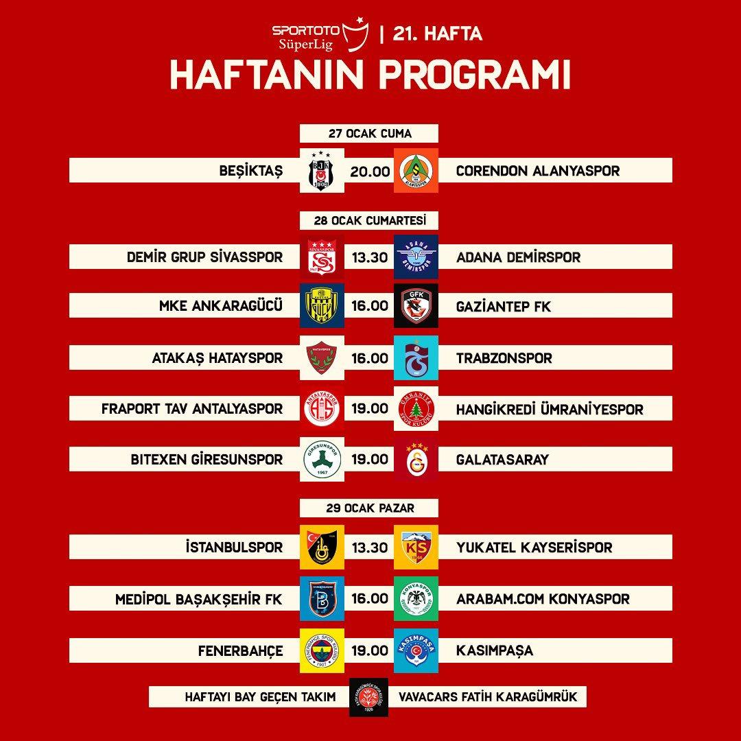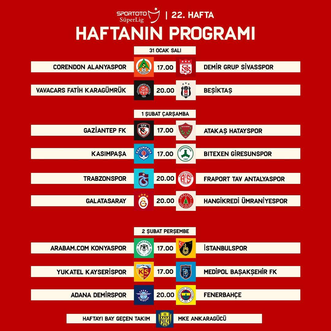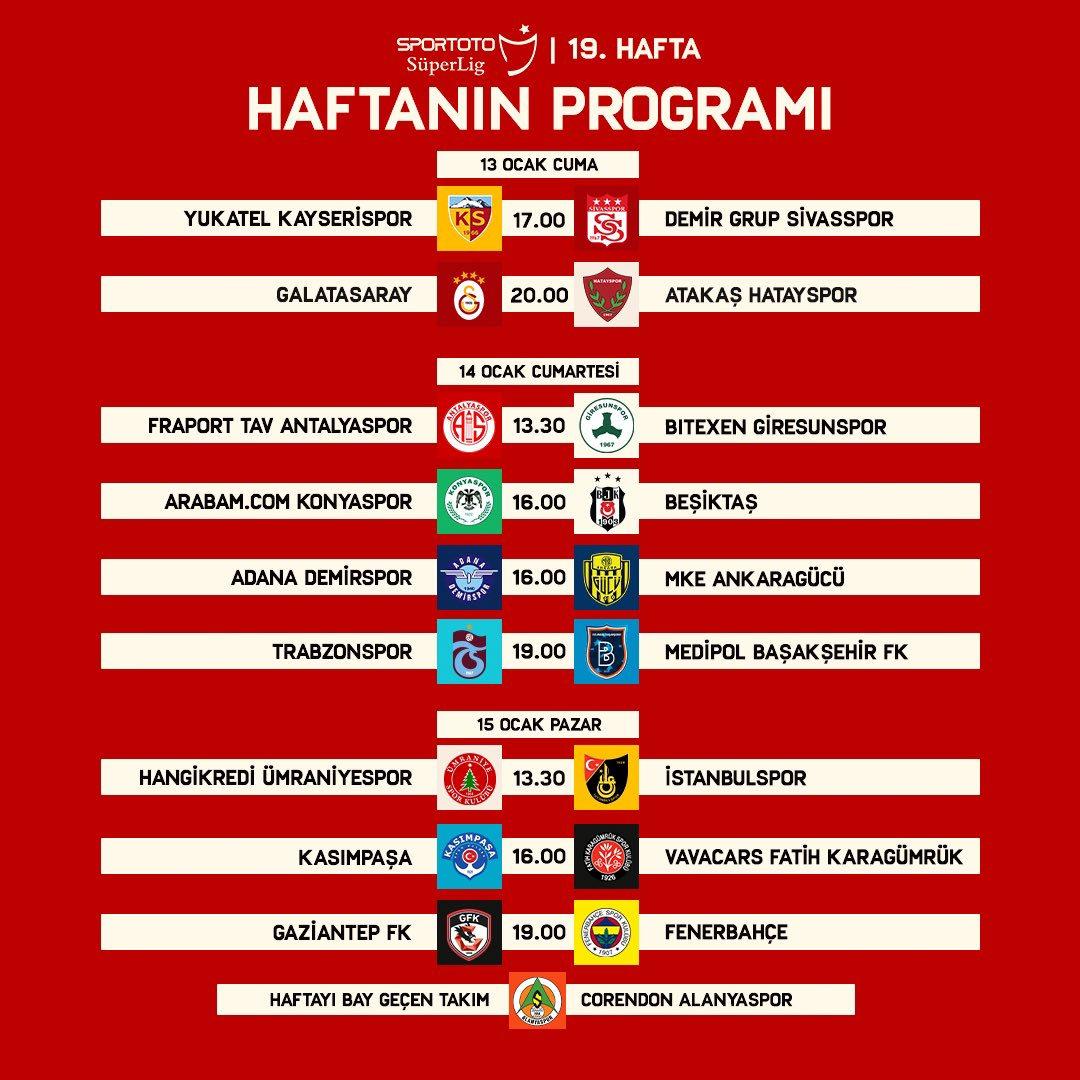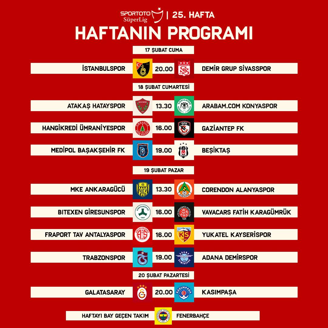Spor Toto Süper Lig'de 19, 20, 21, 22, 23, 24 ve 25. haftanın maç programı açıklandı.