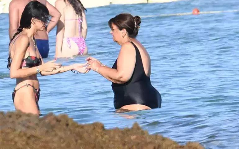 41 yaşındaki moda tasarımcısı, annesi ve oğlu ile birlikte Çeşme'deki Fun Beach'te objektiflere takılmıştı.