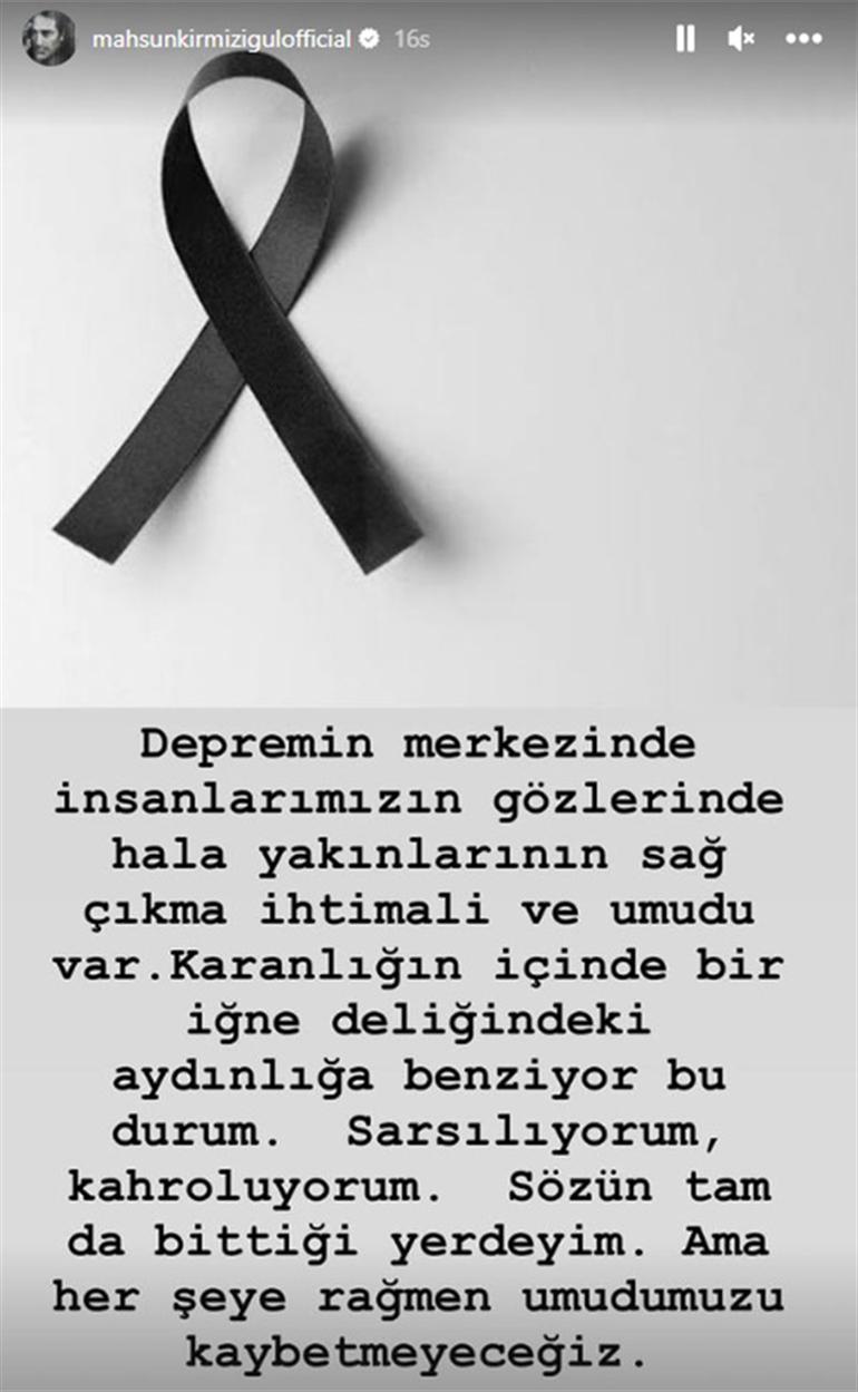 Adıyaman'a gittikten sonra sosyal medyada art arda paylaşımlar yapan ünlü isim, Adıyaman'da halk geceyi sokaklarda geçiriyor. Binlerce insan yakınlarından bir ses, bir haber bekliyor. Ben çok duygusal sahneler, filmler çektiğimi sanıyormuşum. Oysa böylesi içimi ürperten, beni böylesine yıkan bir trajedi ile karşılaşmadım. İnanın hayatımın tokadını yedim" ifadelerini kullanmıştı.