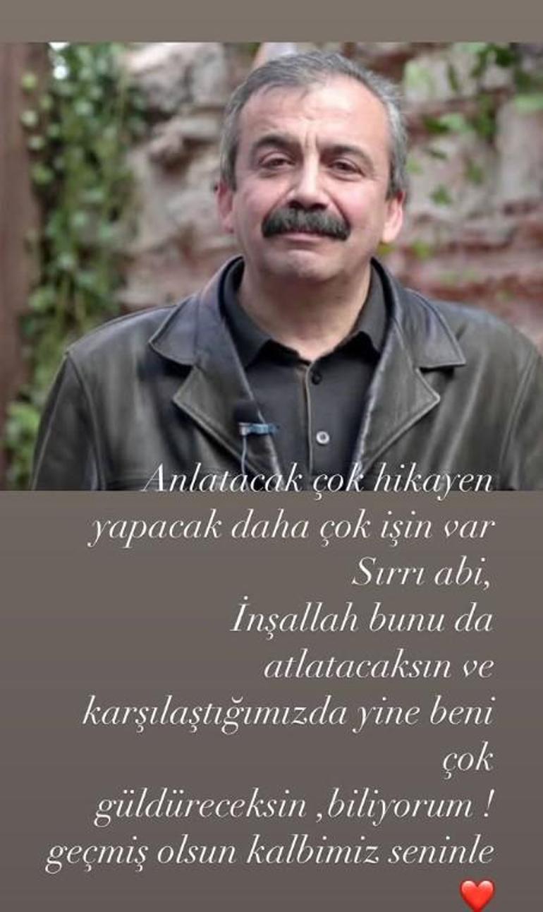 "Anlatacak çok hikayen, yapacak daha çok işin var Sırrı ağabey. İnşallah bunu da atlatacaksın ve karşılaştığımızda yine beni çok güldüreceksin, biliyorum!"