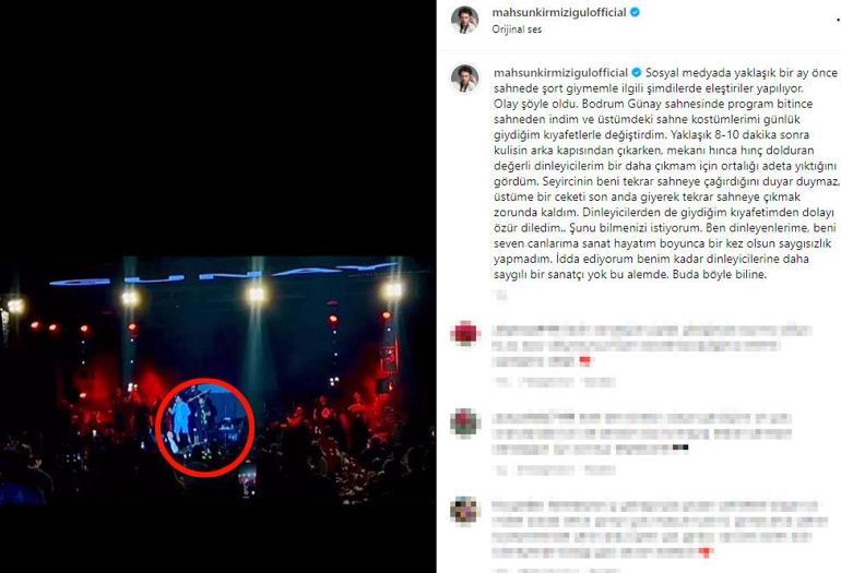 Mahsun Kırmızıgül'ün sahnede şort giymesi eleştirileri beraberinde getirdi. Ünlü şarkıcı, görüntülerin sosyal medyada yayılmasının ardından açıklama yaptı. Konser sonrası hayranlarının ısrarı üzerine sahneye çıktığını dile getiren Kırmızıgül, sevenlerine saygısızlık yapmadığını söyledi.