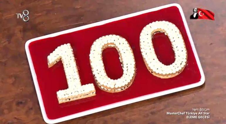 Yarışmacılar ilk olarak 100.yıla özel bir çalışma yaptı. Somer Şef, "Bu kadar özel bir günde özel bir yemekle Cumhuriyetimizin 100.yılını kutlayalım istedik." dedi. Yarışmacılara 100.yıl tabağı için 45 dakika süre verildi.