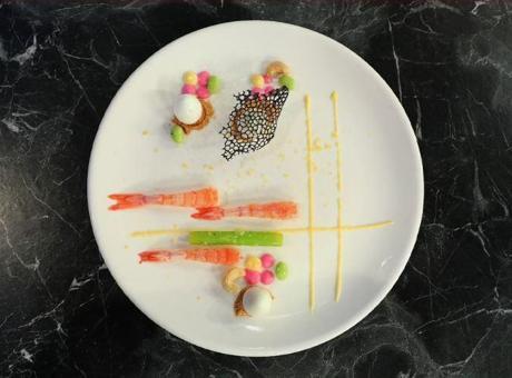 Karidesleri ve kereviz sapını lezzetlenmesi için bekletilen karışımdan çıkarın. Hazırlanan tarhana tozunu tabağa koyun, üzerine soyulmuş bıldırcın yumurtalarını yerleştirin. Kalan malzemeleri kombinasyon oluşturacak şekilde tabak üzerine yerleştirin. Bottarga rendeleyip servis edin.