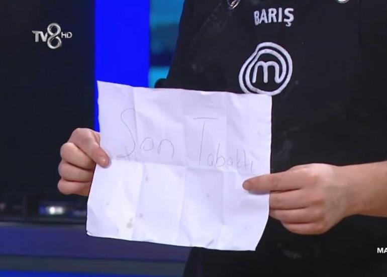 Somer Şef, Barış'ın vedasını açıklamasının ardından, ''Bu senin son tabağın oldu. Hepimizin kader çizgisi var. Hayat sana kolay başlangıç sunmamış. En zor tecrübeyi yaşamışsın. Ama vardır bunda da bir hikmet. Belki bu seni çok farklı insan yaptı. Ben senin kardeşin olsam çok gurur duyardım. Eminim onlar da duyuyordur. Belki buradan sana bambaşka kapılar açılacak. Elenirsin ama kaybetmezsin. Bugün buraya kaybederek değil, MasterChef'in 11.'sini olarak veda ediyorsun. Herkesle tartışıp herkes tarafından sevilen insansın, çünkü içinde kötülük yok. '' dedi.