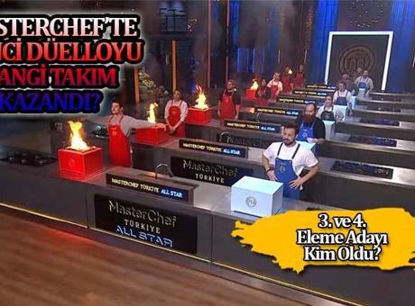 MasterChef düello haftasında takımlar, ikinci kez karşı karşıya geldi. Mavi ve kırmızı takım 3. ve 4. eleme adaylarının kendi içlerinden çıkmaması için ellerinden gelenin fazlasını yaptı. İkinci düello oyununda bambaşka bi konsept yarışmacıları karşıladı. Peki, MasterChef All Star'da hangi takım kazandı, kim eleme adayı oldu?