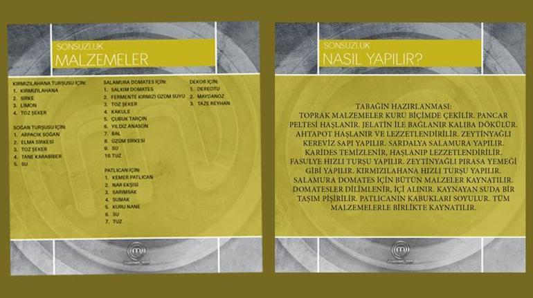 İkinci turda günün anlam ve önemine özel üç şefin birlikte hazırladığı sonsuzluk tabağı yapıldı. İşte o sonsuzluk tabağının tarifi...
