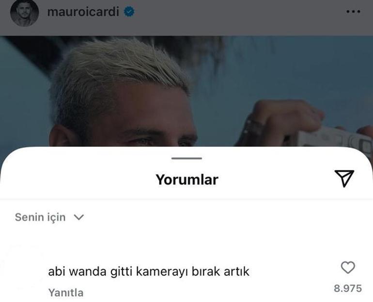Binlerce beğeni alan paylaşıma bomba yorum geldi. Bir kullanıcı yazdığı yorumda, "Abi Wanda gitti kamerayı bırak artık" dedi.
