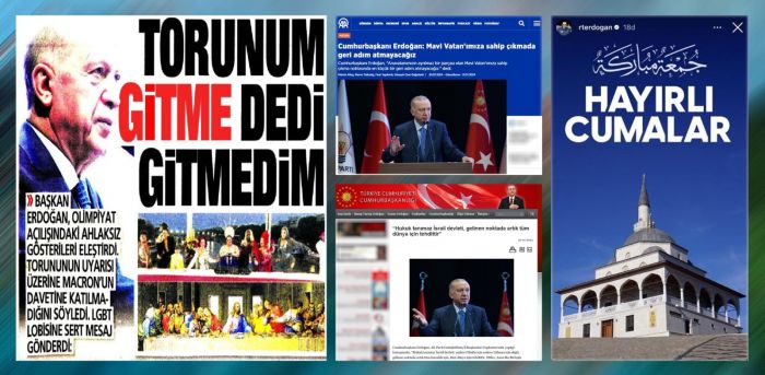 Mantık hatasını gizleyen iktidar medyası, daha sonra ortaya çıkan “Macron’un Erdoğan’ı açılışa davet etmediği” haberlerini de görmezden geldi. Ayrıca Erdoğan’ın, olimpiyatların açılış töreninde olup biteni torunundan öğrenmesini de hiç sorgulamadılar.
