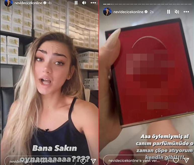 Bu sözler, Nevide Çiçek’i çok kızdırdı. Sosyal medya hesabından paylaşım yapan Çiçek, Mali'nin kendisine hediye ettiği parfümü çöpe atarak; "Sen ödül gecesi az mı peşimden koştun? Ben biriyle konuştuğumu söylediğimde ‘Görüşmeyeceksin onunla’ diye az mı başımın etini yedin. Her şeyin yalanmış" dedi.