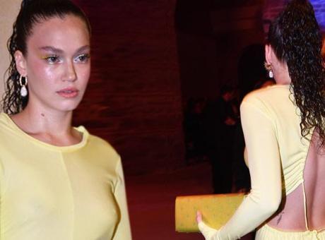 Yeşil saten bir elbise giyen Melisa Şenolsun, sırt dekoltesi ve derin yırtmaç tercih etmişti. Cesaretini konuşturan oyuncunun vücudundaki dövmeler de dikkat çekmişti.