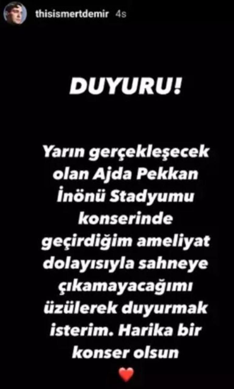 Demir, konsere çıkamayacağını şu sözlerle sosyal medya hesabından duyurmuştu: