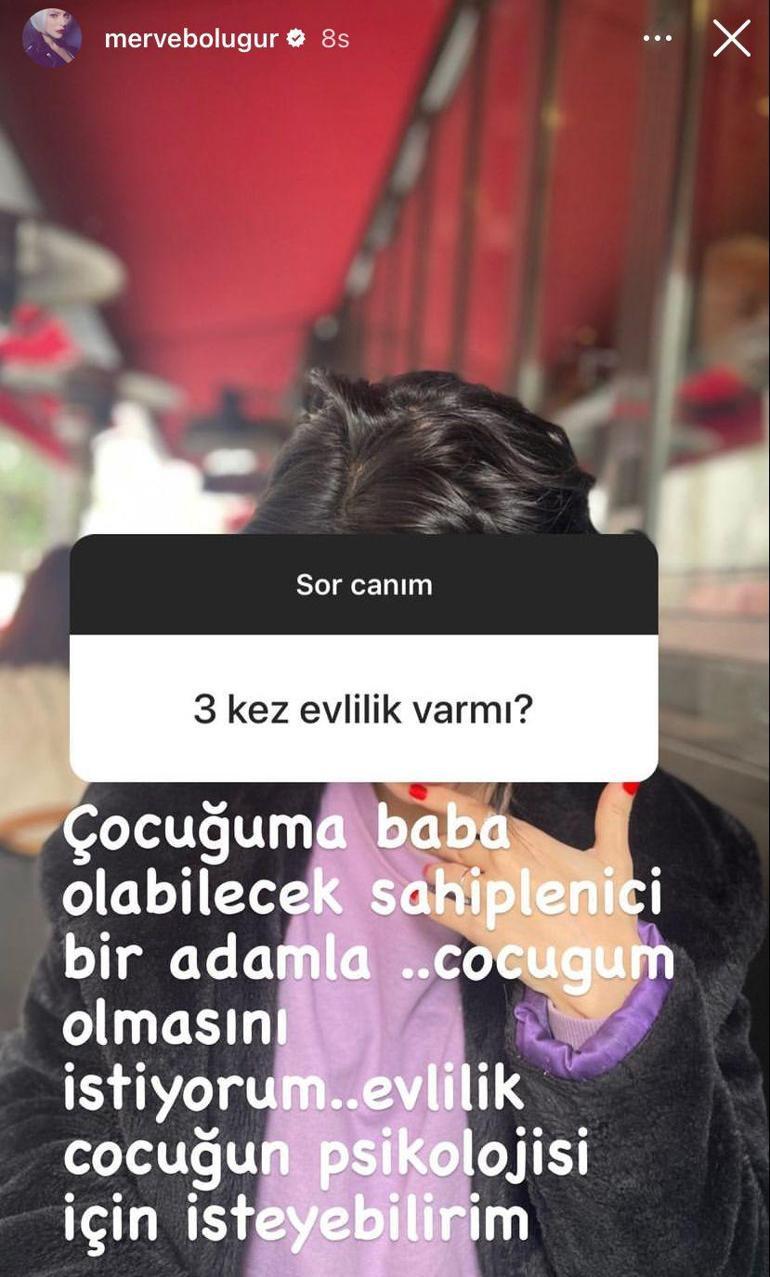 Oyunculuktan uzaklaşıp şarkıcılığa yönelen Merve Boluğur, son olarak 4 milyon takipçisi bulunan Instagram sayfasından hayranlarıyla soru-cevap etkinliği yaptı.