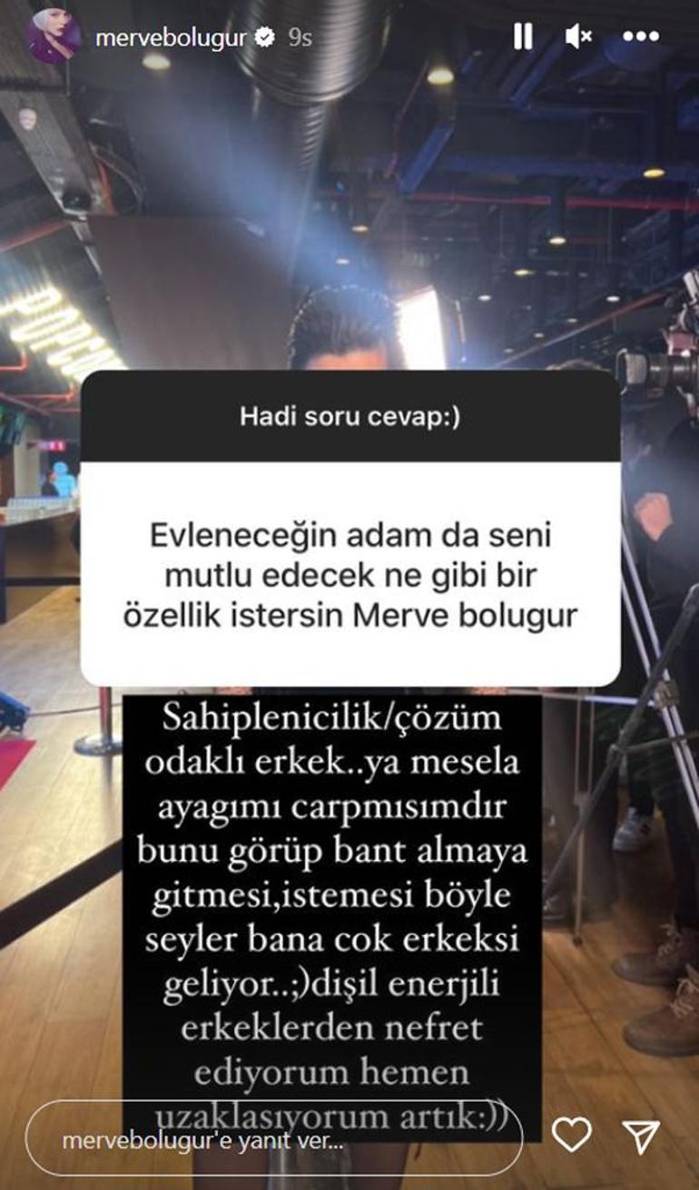Oyunculuktan uzaklaşıp şarkıcılığa yönelen Merve Boluğur, son olarak 4 milyon takipçisi bulunan Instagram sayfasından hayranlarıyla soru-cevap etkinliği yaptı.