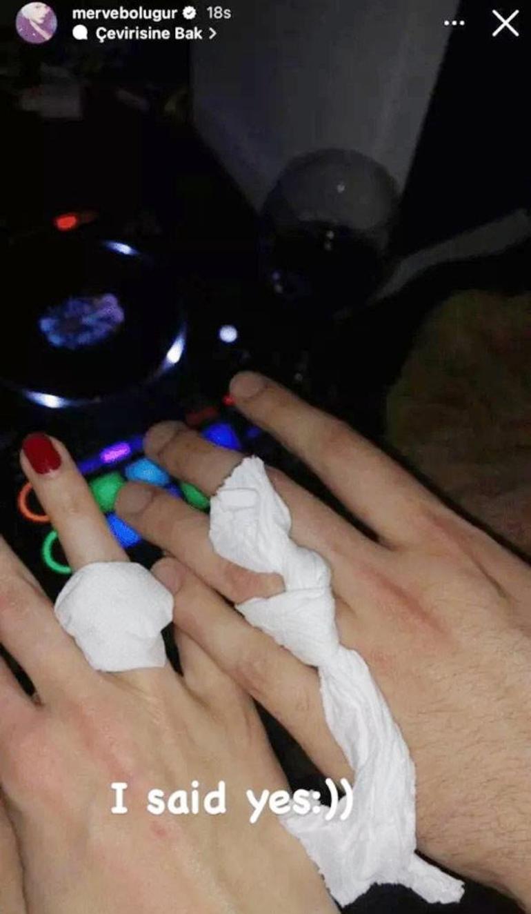 35 yaşındaki güzel, geçtiğimiz ay "I said yes" (Evet dedim) paylaşımıyla adından söz ettirmişti. Bu kare, "Merve Boluğur evleniyor mu?" sorusunu akıllara getirmişti. Fotoğraftaki elin kimin olduğu merak konusu olurken, ünlü isim kısa süre sonra paylaşımı kaldırmıştı.