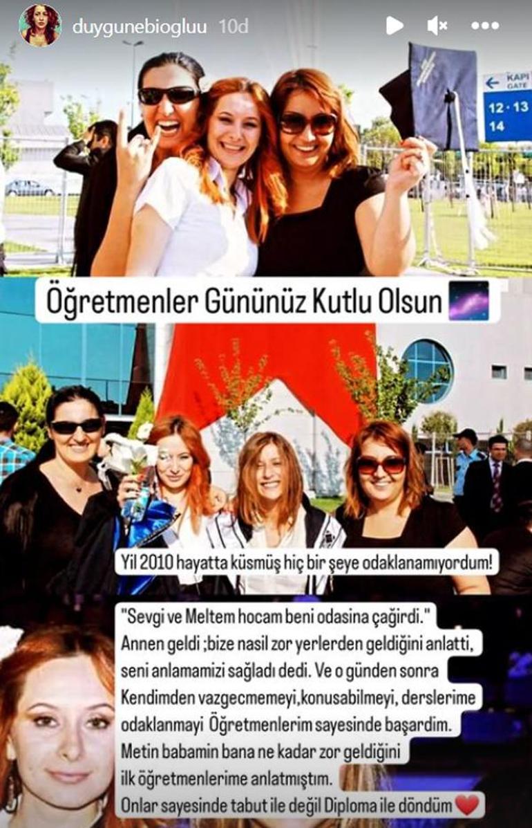 Nebioğlu, son olarak Öğretmenler Günü'nü kutladığı bir paylaşımıyla gündeme geldi. Genç kadın, 13.1 bin takipçisi bulunan Instagram sayfasının hikayeler bölümünden öğretmenleriyle çekilen kareleriyle birlikte yayınladığı mesajda şu ifadelere yer verdi: