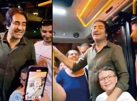 Yolculara sarılan ve hep bir ağızdan ‘Dinle’ parçasını söyleyen sanatçı, “Çeşme’de arkadaşlarımızla yemeğe gittik. Gecenin o saatinde taksi aradık, bulamayınca da minibüse bindik. Araçtakiler kısa bir şok yaşadıktan sonra samimi bir ortam gelişti. İnsanlar şarkı söylememi isteyince, onları kırmadım ve hep birlikte 20 dakikalık unutulmaz anlar yaşadık” diyerek, duygularını paylaştı.