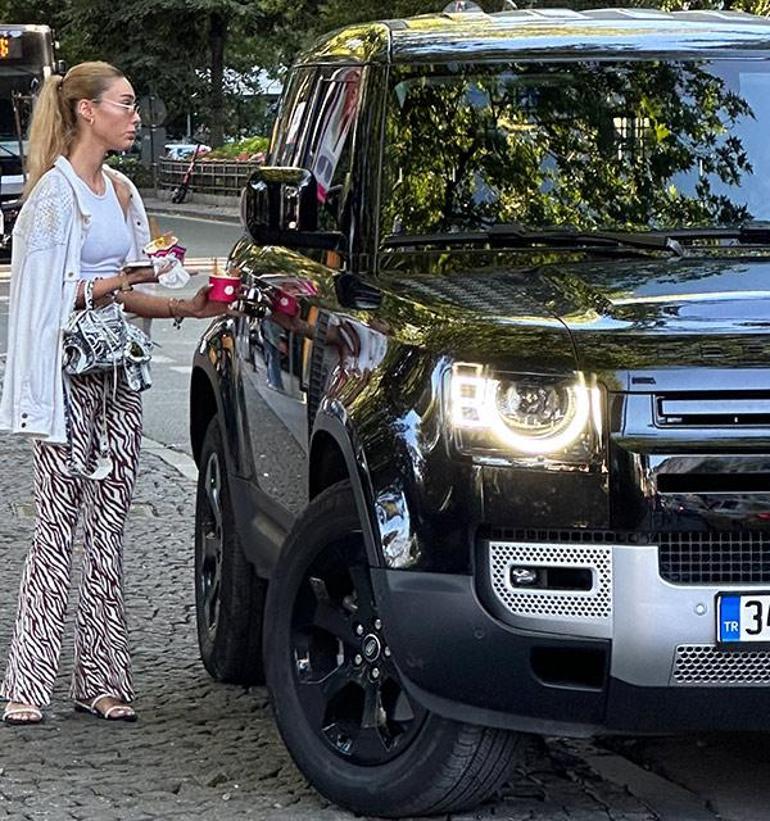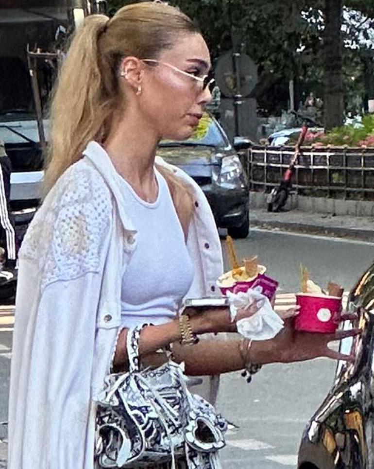 Basın mensuplarını fark eden Dalkılıç, dondurma aldıktan sonra iki eli dolu halde yürümeye çalışan sevgilisini bu kez gaza basarak yolda bıraktı.
