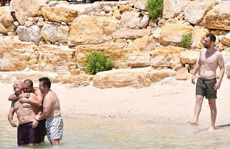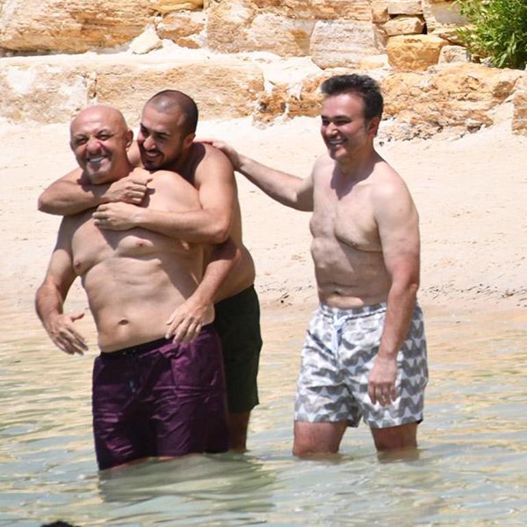 Uzun süre localarında sohbet eden dörtlü ilerleyen saatlerde hep birlikte denize girdiler. Bir ara gülme krizine giren Engin, Aksakallı ve Şentürk’ün o anlarına Oğulcan Engin de sahilden eşlik etti.