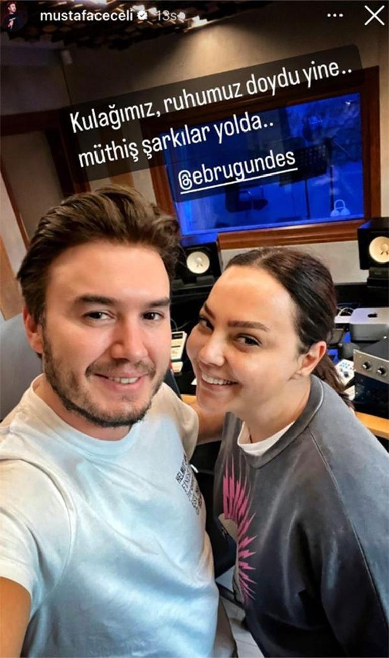 Ebru Gündeş’in albüm çalışmalarıyla ilgilendiğini söyleyen Ceceli,” Solistim benim, ona buradan selamlar gönderiyorum. Stüdyoda o kadar hızlı ki. Biz biliyorsunuz sanatçılar bir günde bir şarkı okuruz, gelip bütün albümü okuyup gitti. Bazen espri yapıyor bana genç yetenek nasıl buluyorsun beni falan diye? İnanılmaz şeker bir insan” dedi. Ebru Gündeş’in albüm tercih ettiğini söyleyen Ceceli, "Benim bildiğim 22 şarkı var şu anda. Hatta seçmekte zorlanıyorlar, kaç albüme böleceğiz diye düşünüyorlar" diye konuştu.