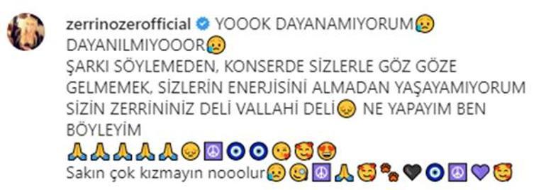 Bu açıklamadan iki ay sonra Zerrin Özer, kararından vazgeçti. Sosyal medya hesabından sahne programını paylaşan ünlü sanatçı, gönderisinin altına;"Yok dayanamıyorum, dayanılmıyor. Şarkı söylemeden, konserde sizlerle göz göze gelmemek, sizlerin enerjisini almadan yaşayamıyorum. Sizin Zerrin'iniz deli vallahi deli! Ney yapayım? Ben böyleyim... Sakın çok kızmayın olur mu?" notunu düştü.