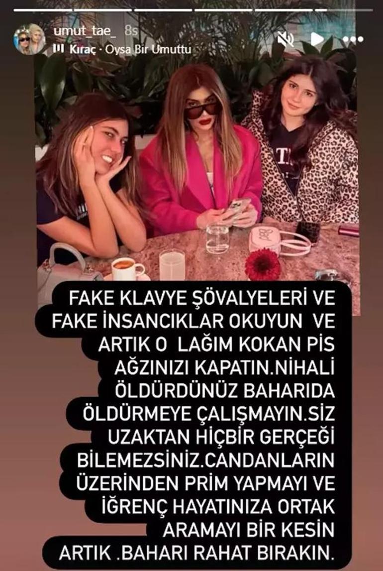Bahar Candan, ablasının vefatı sonrası Mersin'de görüntülenmiş ve eleştirilerin hedefine oturmuştu. Anne Umut Candan duruma tepki göstererek, "Nihal'i öldürdünüz Bahar'ı da öldürmeye çalışmayın. Siz uzaktan gerçeği bilemezsiniz. Bahar'ı rahat bırakın." demişti.