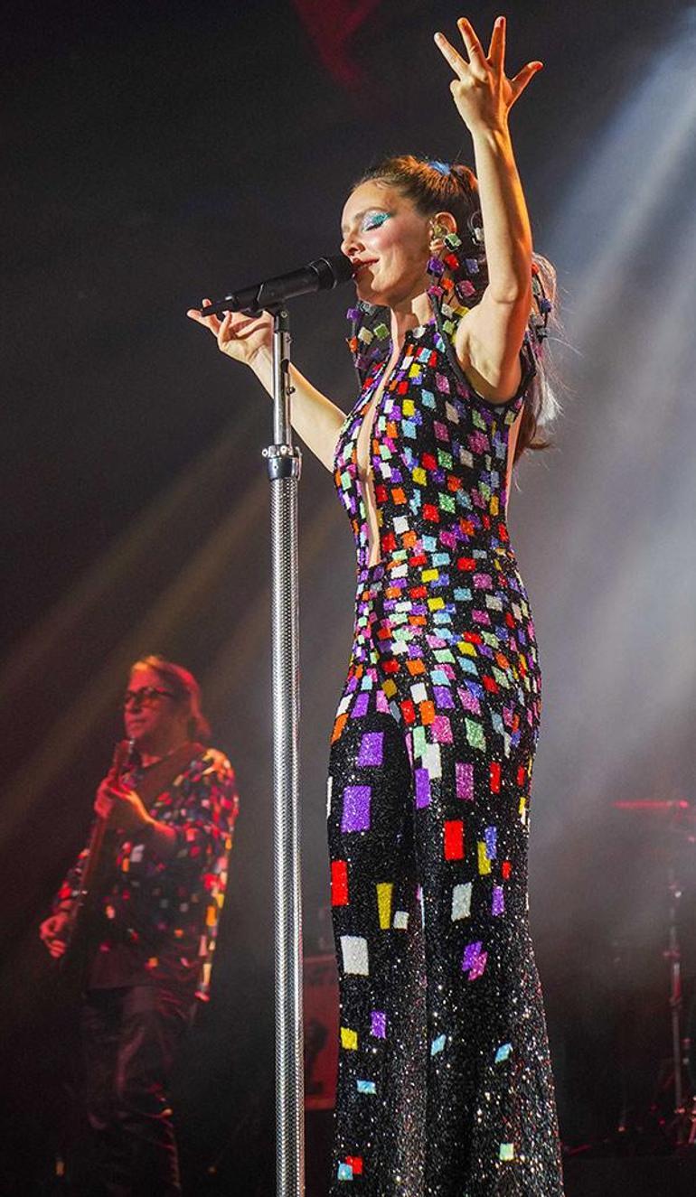 Bostancı Gösteri Merkezi’nde gerçekleşen konseri boyunca festival havası yaşatan Nil Karaibrahimgil, Tanju Babacan imzalı rengarenk kostümüyle adından söz ettirdi.