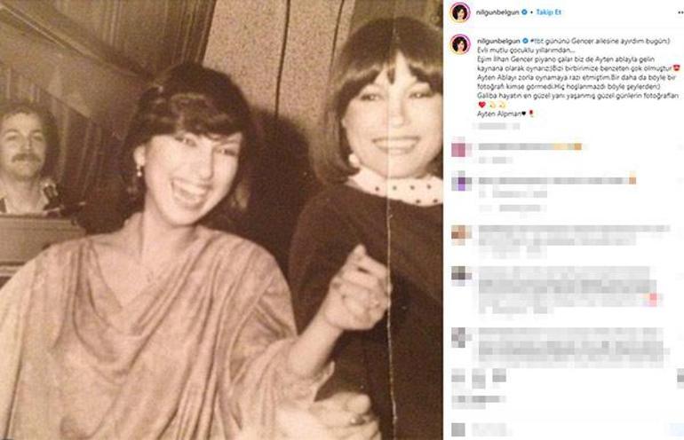 70 yaşındaki sanatçı, Instagram hesabından yaptığı son paylaşımı ile Gencer Ailesi'yle geçirdiği günleri andı. Takipçilerini geçmişe götüren Nilgin Belgün, "Eşim İlhan Gencer piyano çalar biz de Ayten ablayla gelin-kaynana olarak oynarız" mesajını yazdı.