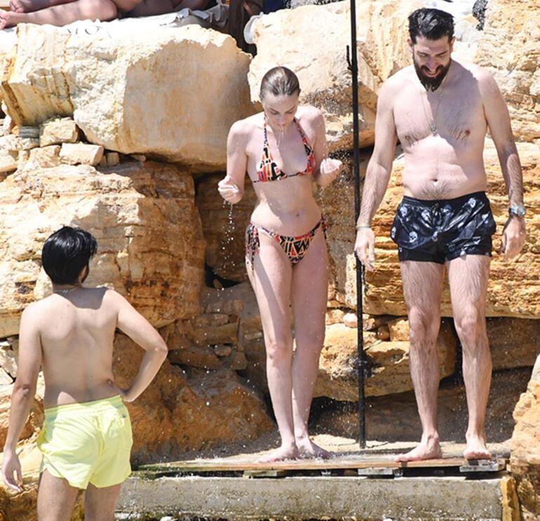 Forma görüntüsü ile tüm bakışları üzerinde toplayan oyuncu ve sevgilisi, sezonun yorgunluğunu çeşme'de atmıştı. İkili, duş aldıktan sonra şezlonglarına geçip, hem güneşlenmiş hem de arkadaşlarıyla sohbet etmişti.