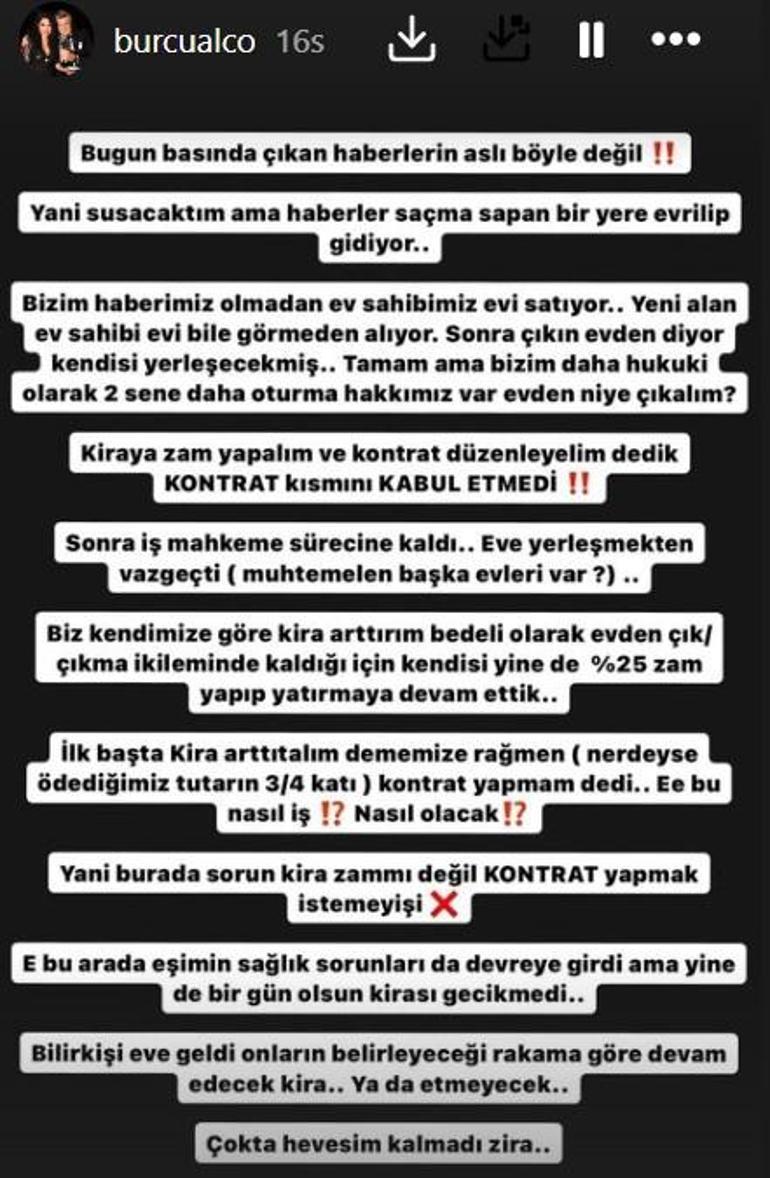 Ünlü ismin oturduğu eve 3 bin 500 TL kira ödediği ev sahibinin tahliyesini istediği ortaya çıkmıştı. Konuyla ilgili Burcu Alço'dan açıklama geldi.