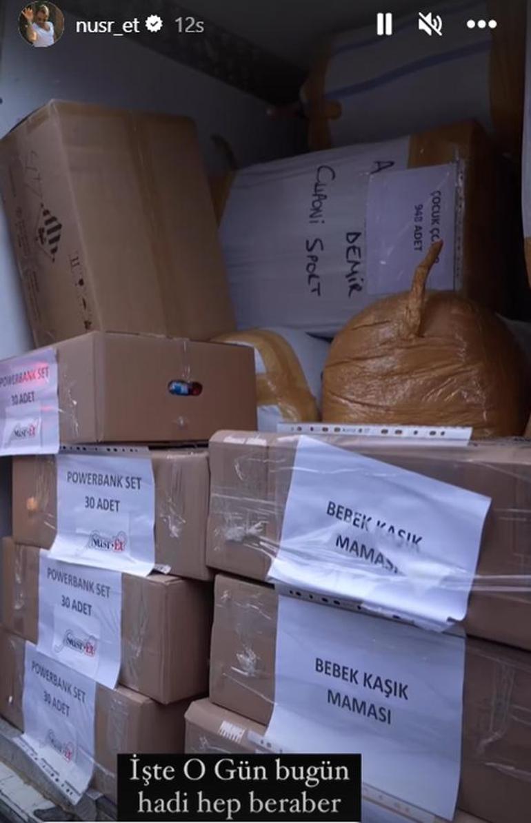 'Tuz serpme' hareketi ile şöhreti yakalayan restoran zinciri sahibi Nusret Gökçe, sosyal medya hesabından deprem bölgesine yardım gönderdiği anları yayınladı.
